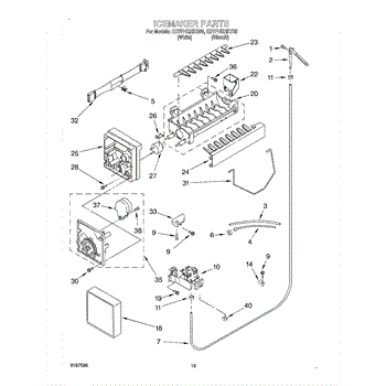 The Ice Container Assembly is an OEM part for Whirlpool refrigerators. This assembly includes the ice bin, where ice is collected, and often features integrated mechanisms or augers for dispensing ice through the refrigerator's door.