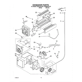 Causes of a bad Ice Container Assembly can include cracks or damage to the bin, which can lead to ice leaks or accumulation in the freezer; wear or malfunction of the dispensing mechanism, affecting its ability to deliver ice.