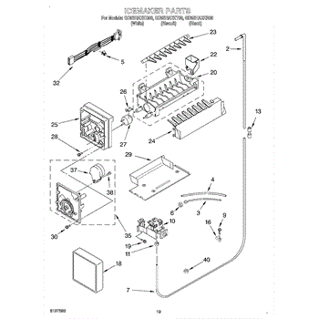 Parts for Whirlpool GD5SHAXKB00: 12 - Icemaker Parts