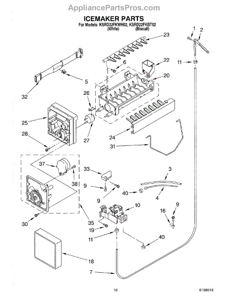 This is the complete horizontal ice dispenser bucket assembly with crusher. It fits 22 cubic foot refrigerator models. For 20 cubic foot models order WP2209778. For 25 and 27 cubic foot models order WPW10312300.