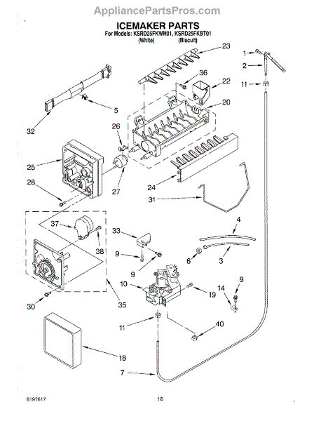 Parts for Kitchenaid KSRD25FKWH01: 12 - Ice Maker, Optional Parts