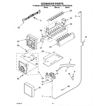 Parts for Kitchenaid KSRG27FKBL02: 12 - Ice Maker, Optional Parts