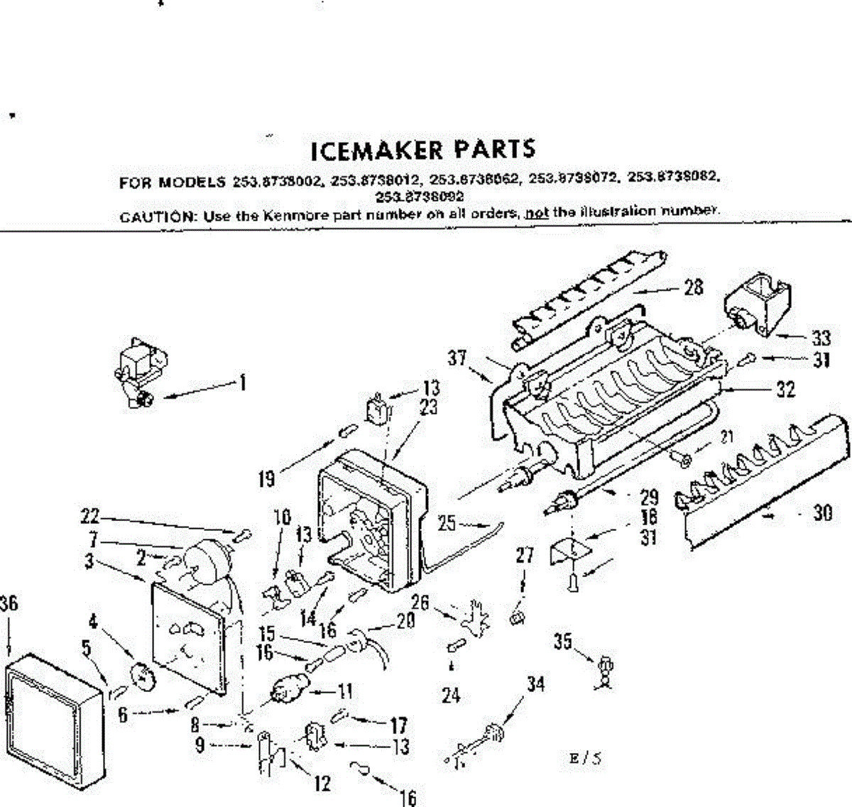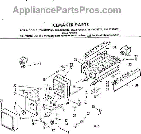 Parts for Kenmore 253.8738062 (2538738062, 253 8738062): Icemaker Parts