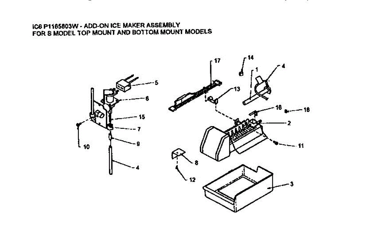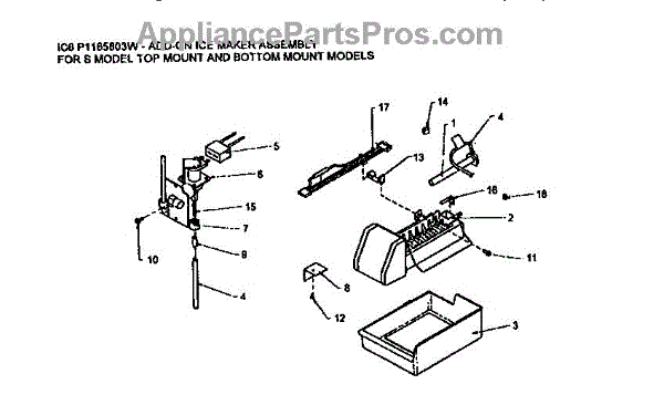 Parts for Amana TR21S4L-P1196102WL: Icemaker Ic6 P1165803w Parts