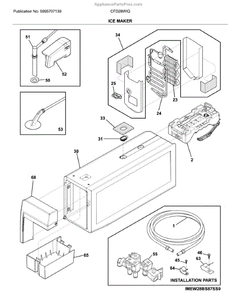 The Ice Maker Assembly is an OEM part for Frigidaire refrigerators. It is responsible for automatically producing batches of ice through a process of freezing water into cube form. The ice maker works in conjunction with the refrigerator's freezer compartment and water supply line to perform its ice production function.