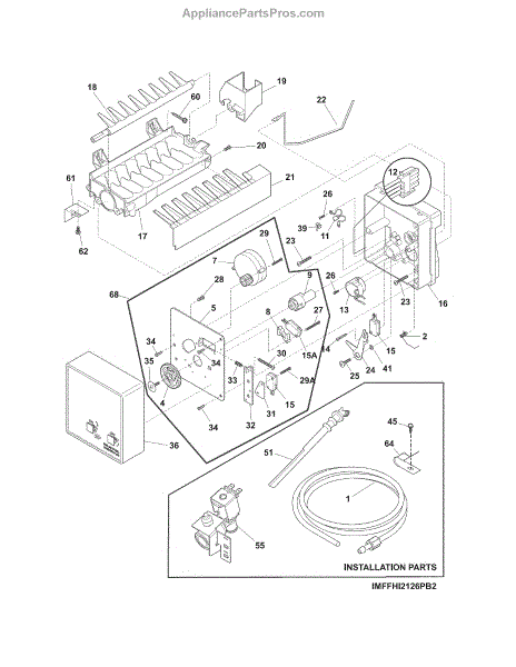 The Ice Maker Fill Tube Assembly is an OEM replacement part for Frigidaire refrigerators. As a component of the automatic icemaker, this fill tube assembly transports water from the water supply line into the ice molding chamber. Causes of a bad fill tube assembly can include cracks, leaks, or blockages developing over time due to mineral buildup or mold growth inside the plastic tubing. Constant bending during ice production also leads to tubing fatigue. Symptoms of a bad fill tube assembly include: