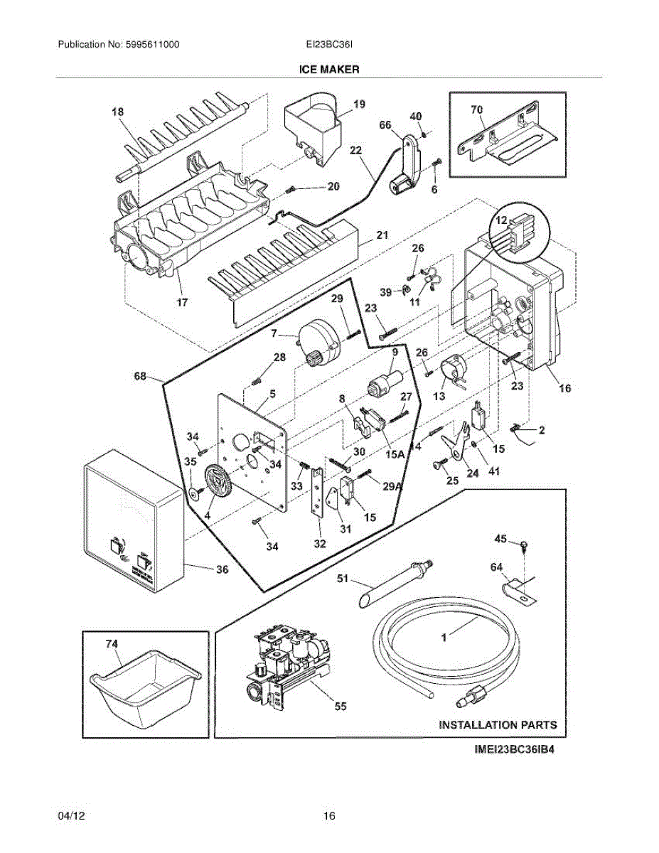 Parts for Electrolux EI23BC36IW7: 15 - Ice Maker Parts