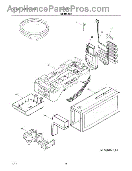 Ice maker leaking water or producing malformed cubes? A cracked water fill chute allows water to leak instead of filling properly. Simple snap-in repair.