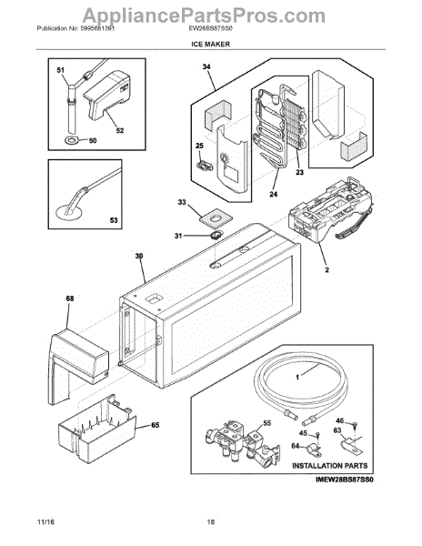 The Ice Maker Assembly is an OEM part for Frigidaire refrigerators. It is responsible for automatically producing batches of ice through a process of freezing water into cube form. The ice maker works in conjunction with the refrigerator's freezer compartment and water supply line to perform its ice production function.