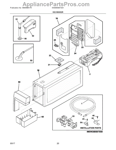 The Ice Maker Assembly is an OEM part for Frigidaire refrigerators. It is responsible for automatically producing batches of ice through a process of freezing water into cube form. The ice maker works in conjunction with the refrigerator's freezer compartment and water supply line to perform its ice production function.