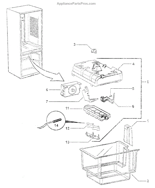Replacement ice bin and scoop assembly that stores and produced ice and provides a convenient scoop for serving. Restores a cracked, stained, or missing ice bin so ice is contained and easy to retrieve. What it does