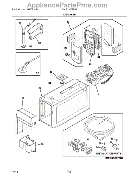 The Ice Maker Assembly is an OEM part for Frigidaire refrigerators. It is responsible for automatically producing batches of ice through a process of freezing water into cube form. The ice maker works in conjunction with the refrigerator's freezer compartment and water supply line to perform its ice production function.