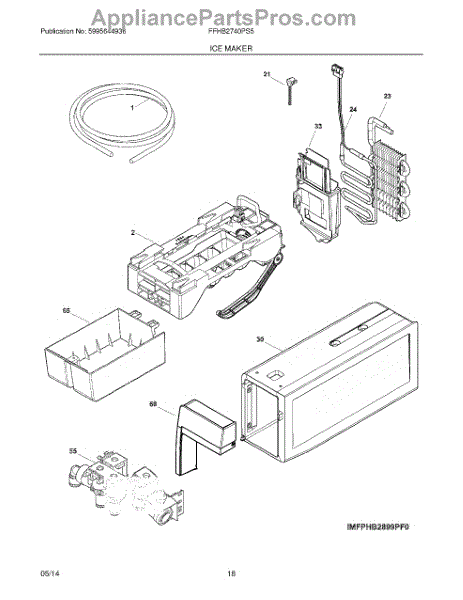 The Ice Maker Assembly is an OEM part for Frigidaire refrigerators. It is responsible for automatically producing batches of ice through a process of freezing water into cube form. The ice maker works in conjunction with the refrigerator's freezer compartment and water supply line to perform its ice production function.