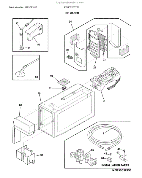 The Ice Maker Assembly is an OEM part for Frigidaire refrigerators. It is responsible for automatically producing batches of ice through a process of freezing water into cube form. The ice maker works in conjunction with the refrigerator's freezer compartment and water supply line to perform its ice production function.