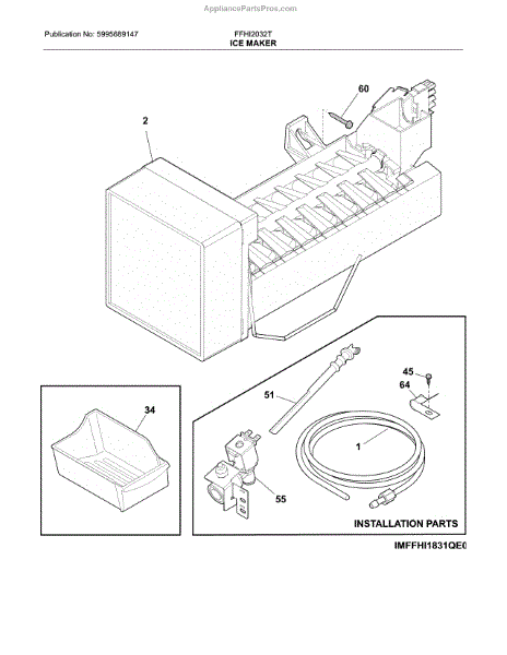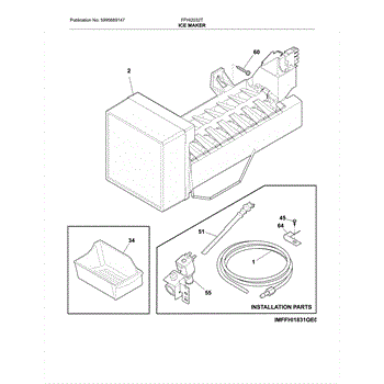 Replaces cracked, leaking, or melted ice maker fill tube that carries water from the supply line to the ice mold. Installs in the freezer compartment.