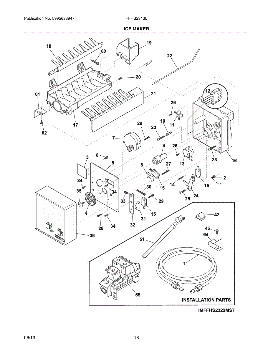Replaces cracked, leaking, or melted ice maker fill tube that carries water from the supply line to the ice mold. Installs in the freezer compartment.