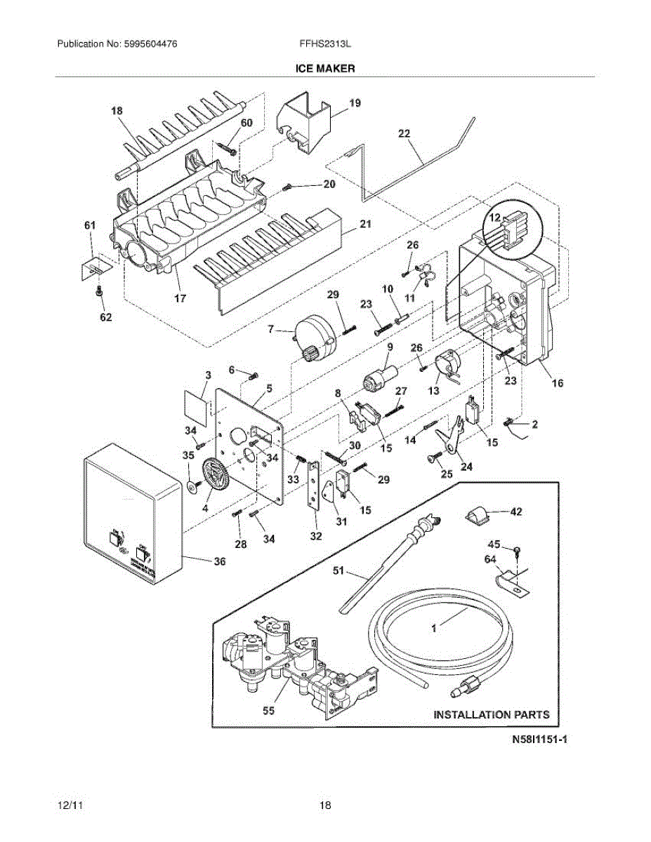 Replaces cracked, leaking, or melted ice maker fill tube that carries water from the supply line to the ice mold. Installs in the freezer compartment.