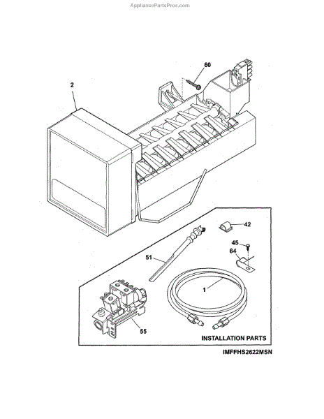 The Ice Maker Fill Tube Assembly is an OEM replacement part for Frigidaire refrigerators. As a component of the automatic icemaker, this fill tube assembly transports water from the water supply line into the ice molding chamber. Causes of a bad fill tube assembly can include cracks, leaks, or blockages developing over time due to mineral buildup or mold growth inside the plastic tubing. Constant bending during ice production also leads to tubing fatigue. Symptoms of a bad fill tube assembly include: