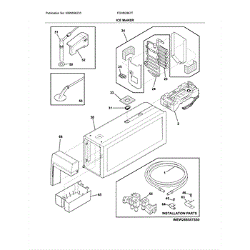 The Ice Maker Assembly is an OEM part for Frigidaire refrigerators. It is responsible for automatically producing batches of ice through a process of freezing water into cube form. The ice maker works in conjunction with the refrigerator's freezer compartment and water supply line to perform its ice production function.