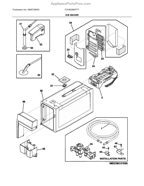 The Ice Maker Assembly is an OEM part for Frigidaire refrigerators. It is responsible for automatically producing batches of ice through a process of freezing water into cube form. The ice maker works in conjunction with the refrigerator's freezer compartment and water supply line to perform its ice production function.