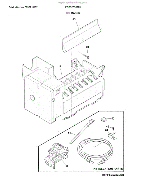 The Ice Maker Fill Tube Assembly is an OEM replacement part for Frigidaire refrigerators. As a component of the automatic icemaker, this fill tube assembly transports water from the water supply line into the ice molding chamber. Causes of a bad fill tube assembly can include cracks, leaks, or blockages developing over time due to mineral buildup or mold growth inside the plastic tubing. Constant bending during ice production also leads to tubing fatigue. Symptoms of a bad fill tube assembly include: