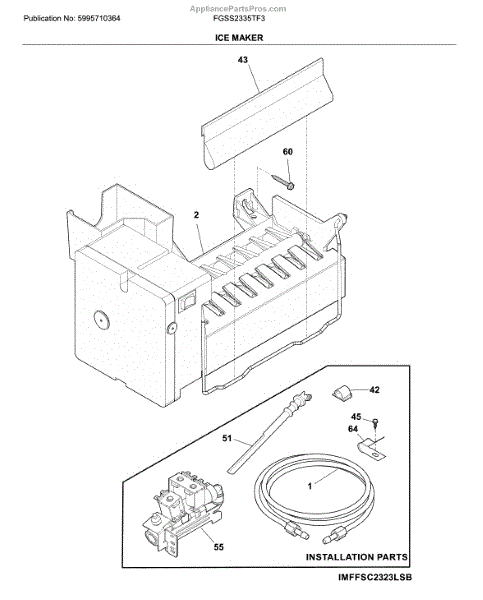 The Ice Maker is an OEM replacement part for Frigidaire refrigerators. Located inside the freezer compartment, it produces batches of cube-shaped ice automatically on demand. The ice maker features a freshwater inlet, ice-forming tray, and harvest mechanism to eject fully formed ice cubes downward into the storage bin below. Causes of a bad icemaker can include mineral or scale buildup that interferes with the freezing and ejection mechanisms over time, worn components like the harvest arm or water valve, or problems with the water supply line. Symptoms of a bad icemaker include:
