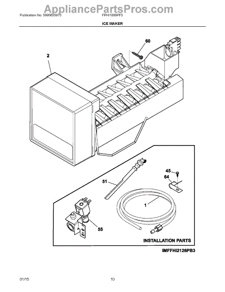 The Ice Maker Fill Tube Assembly is an OEM replacement part for Frigidaire refrigerators. As a component of the automatic icemaker, this fill tube assembly transports water from the water supply line into the ice molding chamber. Causes of a bad fill tube assembly can include cracks, leaks, or blockages developing over time due to mineral buildup or mold growth inside the plastic tubing. Constant bending during ice production also leads to tubing fatigue. Symptoms of a bad fill tube assembly include: