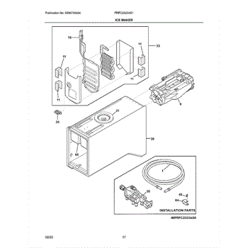 The ICE MAKER is an OEM part for Frigidaire refrigerators. It automatically produces batches of ice cubes which are then dispensed through the freezer door. The icemaker is designed to work with the refrigerator's water supply and cooling system to efficiently freeze water into usable ice cubes.