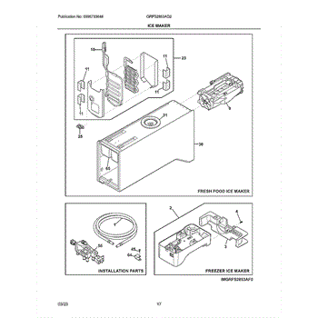 The ICE MAKER is an OEM part for Frigidaire refrigerators. It automatically produces batches of ice cubes which are then dispensed through the freezer door. The icemaker is designed to work with the refrigerator's water supply and cooling system to efficiently freeze water into usable ice cubes.