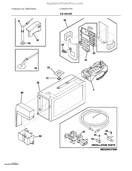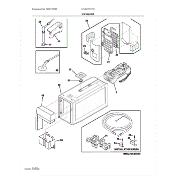 The Ice Maker Assembly is an OEM part for Frigidaire refrigerators. It is responsible for automatically producing batches of ice through a process of freezing water into cube form. The ice maker works in conjunction with the refrigerator's freezer compartment and water supply line to perform its ice production function.