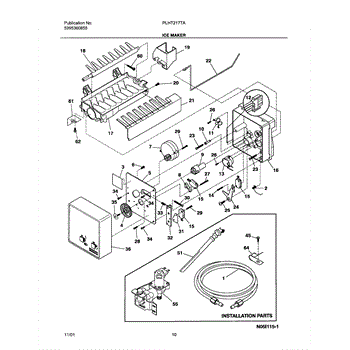 Replaces cracked, frozen, or leaking ice maker fill tube. Directs water from supply line into ice maker tray. Common replacement for damaged tubes.