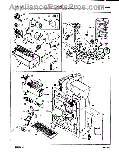 By Maytag. Engineered to replace the timer controlled 12 and 24 cube style flex tray ice makers used by Admiral, Maytag, Magic Chef, Crosley and some Montgomery Ward refrigerators before 1990. Includes ducts, fill tube and related hardware. Replacement only, not for brand new installations.