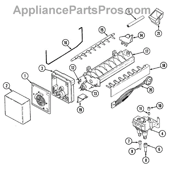 • Works with the ice maker's motor/gear assembly to advance cubes into the bin.