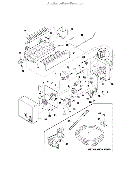 Fix ice maker overfilling, water spillage, or no ice production. Includes cover, fill cup, bail arm, and harness. Easy 5-10 minute DIY install.