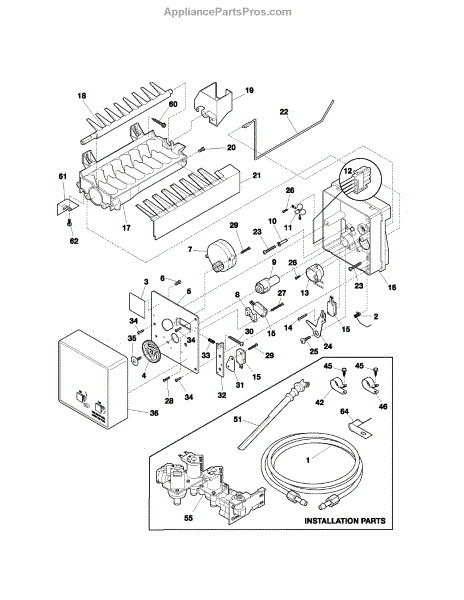 Fix ice maker overfilling, water spillage, or no ice production. Includes cover, fill cup, bail arm, and harness. Easy 5-10 minute DIY install.