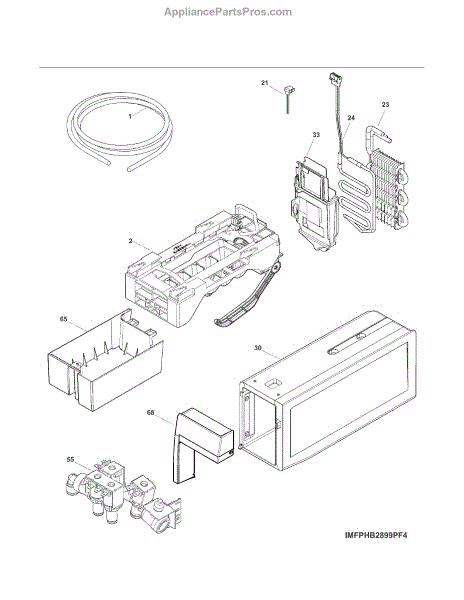 • Directs water from the refrigerator inlet valve to the ice maker and dispenser assembly.