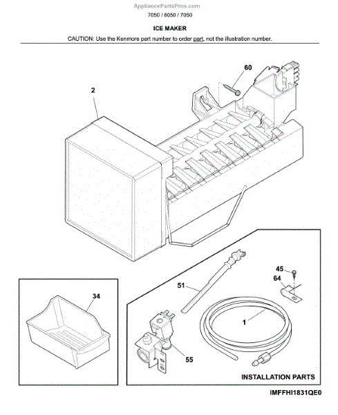 Parts for Kenmore 253.70502619 (25370502619, 253 70502619): Ice Maker Parts