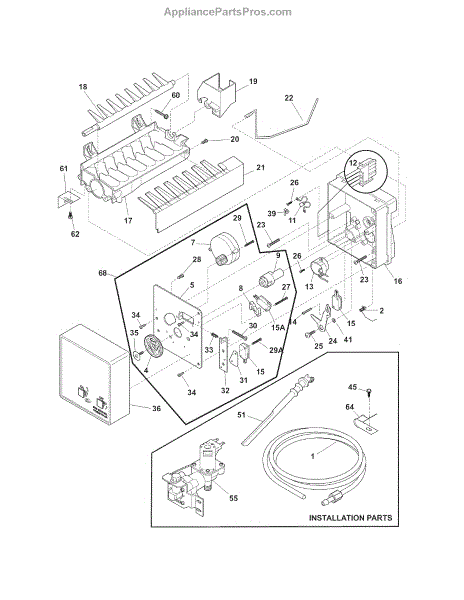 Replaces cracked, leaking, or melted ice maker fill tube that carries water from the supply line to the ice mold. Installs in the freezer compartment.