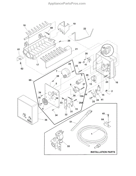 Replaces cracked, leaking, or melted ice maker fill tube that carries water from the supply line to the ice mold. Installs in the freezer compartment.