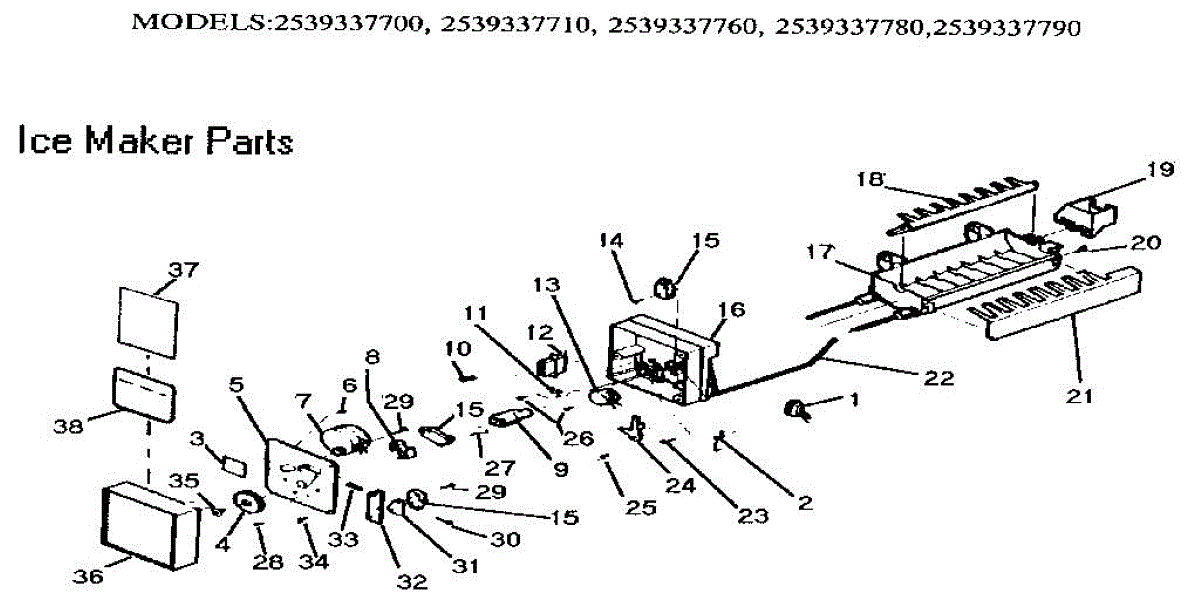 Parts for Kenmore 253.9337710 (2539337710, 253 9337710): Ice Maker Parts