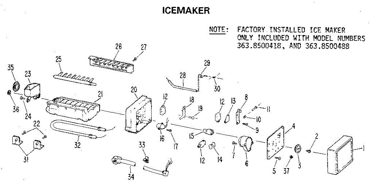 Parts for Kenmore 363.8500418 (3638500418, 363 8500418): Icemaker Parts
