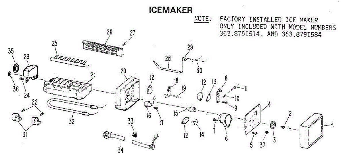 Parts for Kenmore 363.8691584 (3638691584, 363 8691584): Icemaker Parts