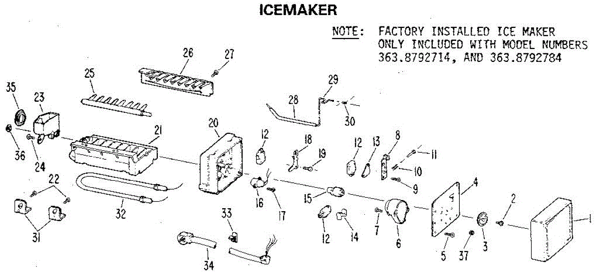 Parts for Kenmore 363.8792784 (3638792784, 363 8792784): Icemaker Parts