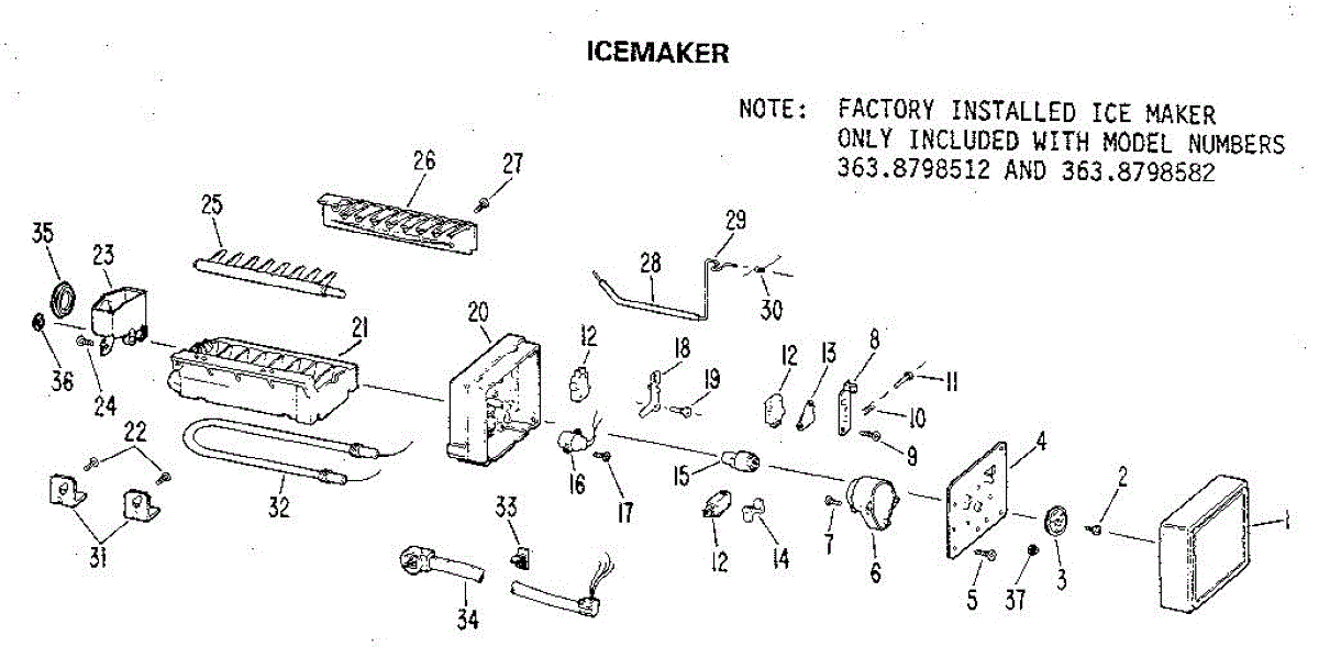 Parts for Kenmore 363.8798512 (3638798512, 363 8798512): Icemaker Parts