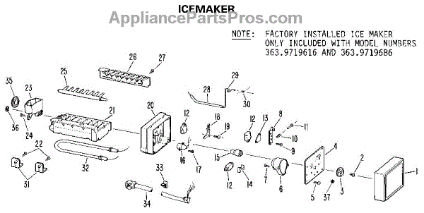 Parts for Kenmore 363.9619616 (3639619616, 363 9619616): Icemaker Parts