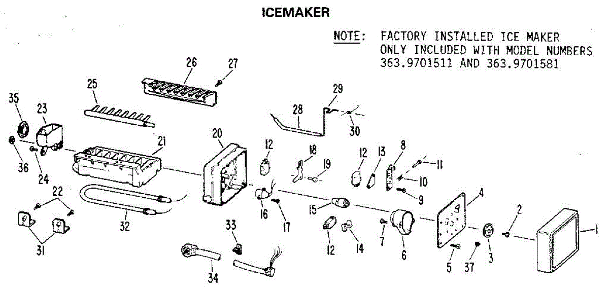 Parts for Kenmore 363.9701581 (3639701581, 363 9701581): Icemaker Parts