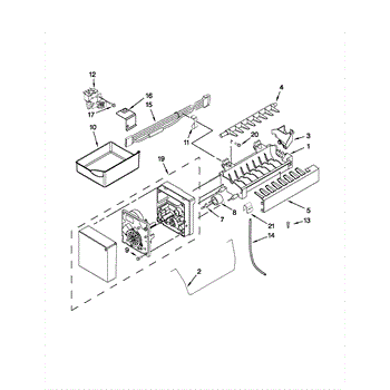 This ice container stores the ice your refrigerator makes and interfaces with the dispenser drive so cubes reach the door. Replacing a cracked or worn bin restores smooth, sanitary ice storage and dependable dispensing.