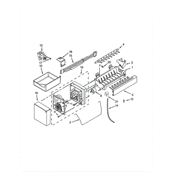This ice container stores the ice your refrigerator makes and interfaces with the dispenser drive so cubes reach the door. Replacing a cracked or worn bin restores smooth, sanitary ice storage and dependable dispensing.