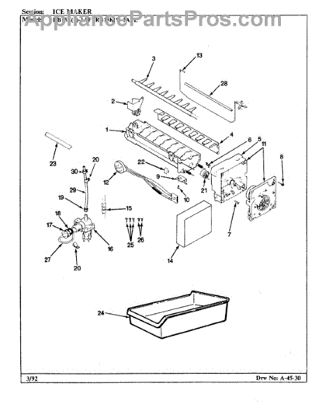 Ice stripper removes ice cubes from the ice maker mold so the dispenser or storage bin fills properly. Replacing a worn or broken stripper helps the ice maker eject cubes cleanly and reduces ice jams or stuck cubes. What it does: