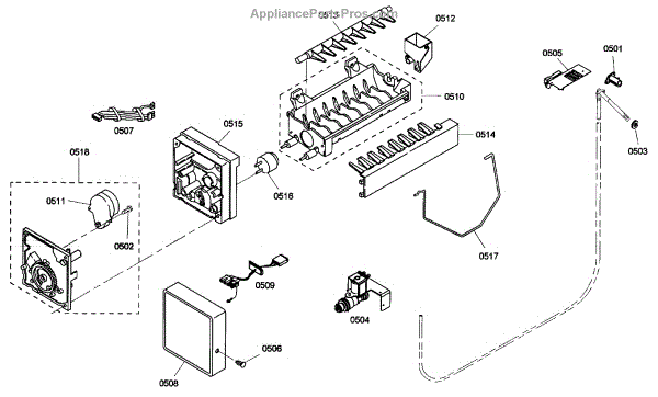 The Water Valve is an OEM part for Bosch refrigerators. This part controls the flow of water into the refrigerator's ice maker and water dispenser system. By opening and closing in response to demands from the refrigerator's control system, it ensures the proper amount of water is supplied for making ice and dispensing water, maintaining optimal operation and efficiency.